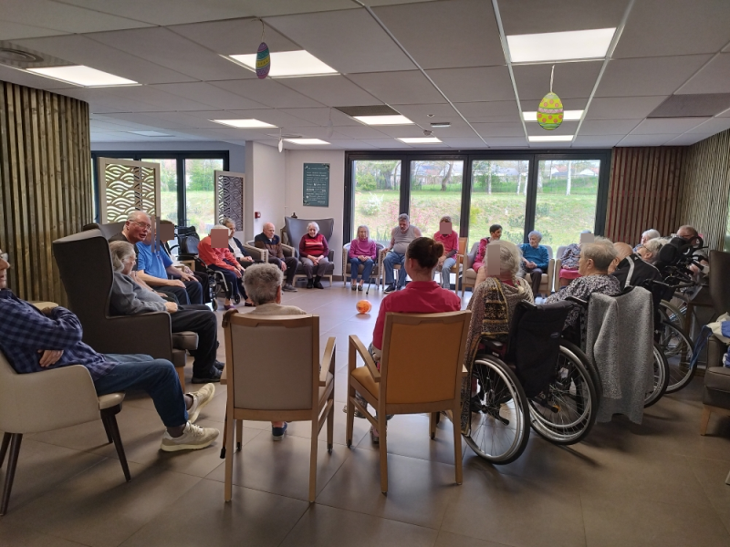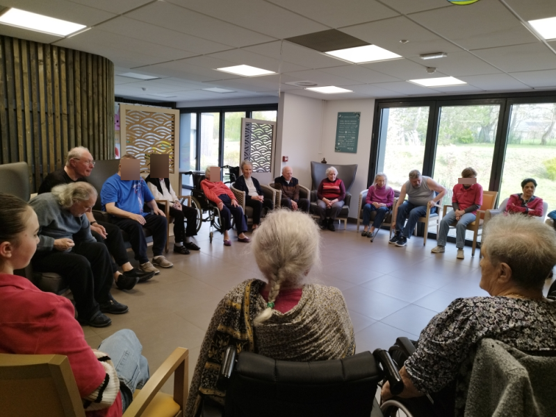 Chaque mardi et vendredi après-midi, les résidents participent à une séance de gym douce animée par Didier.