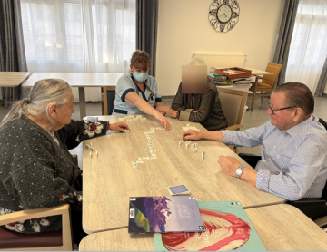 Le fils d’une résidente est venu évoquer ces récits pleins d’humour et de traditions, faisant revivre le Berry d’autrefois à travers anecdotes et souvenirs. Très vite, les échanges se sont installés : sourires, rires et souvenirs personnels ont rythmé l’après-midi.
