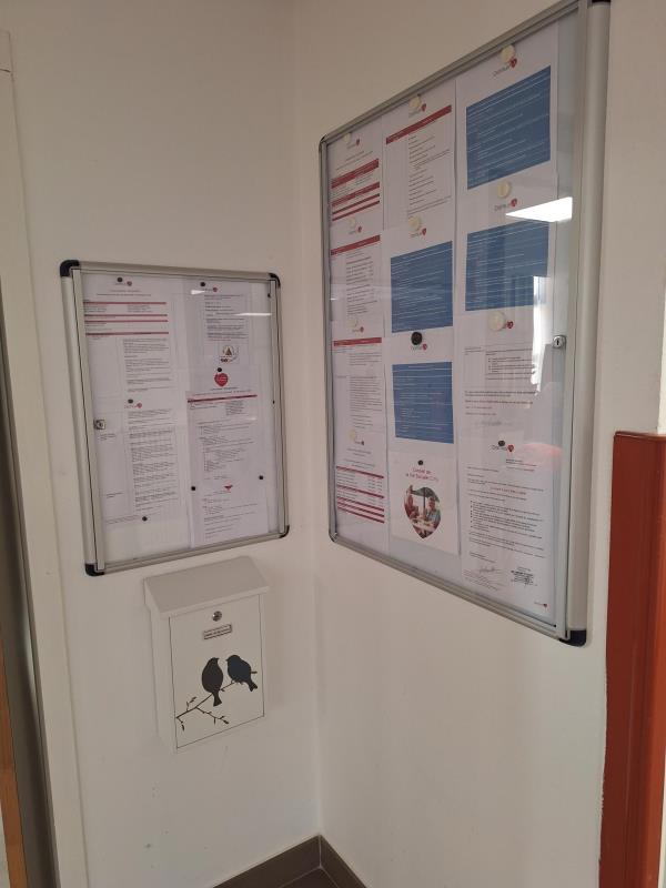 A l'accueil, à côté de la porte de la salle à manger du rez-de-chaussée, vous trouverez le dernier compte rendu de réunion, ainsi que la liste des représentants. Une boîte aux lettres vous permet de communiquer directement avec les membres du conseil.